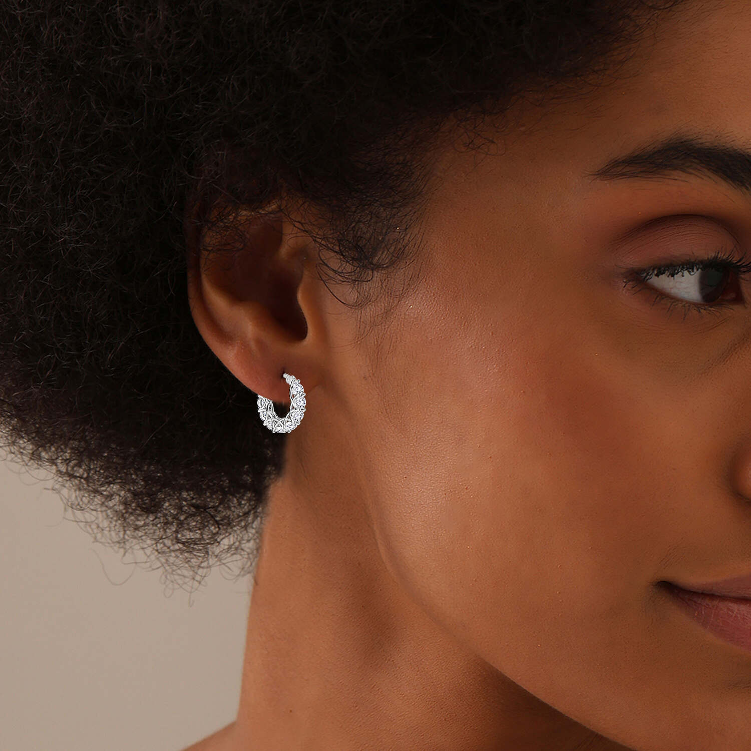 Round Diamond-Cut Textured Hoop Earrings