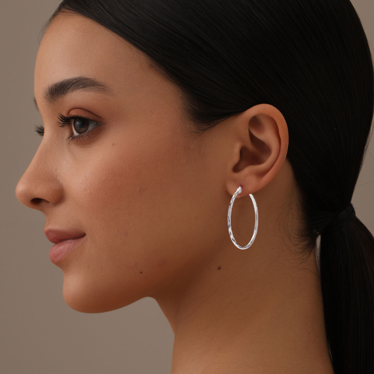 Medium Hypoallergenic Diamond Cut Hoop Earrings