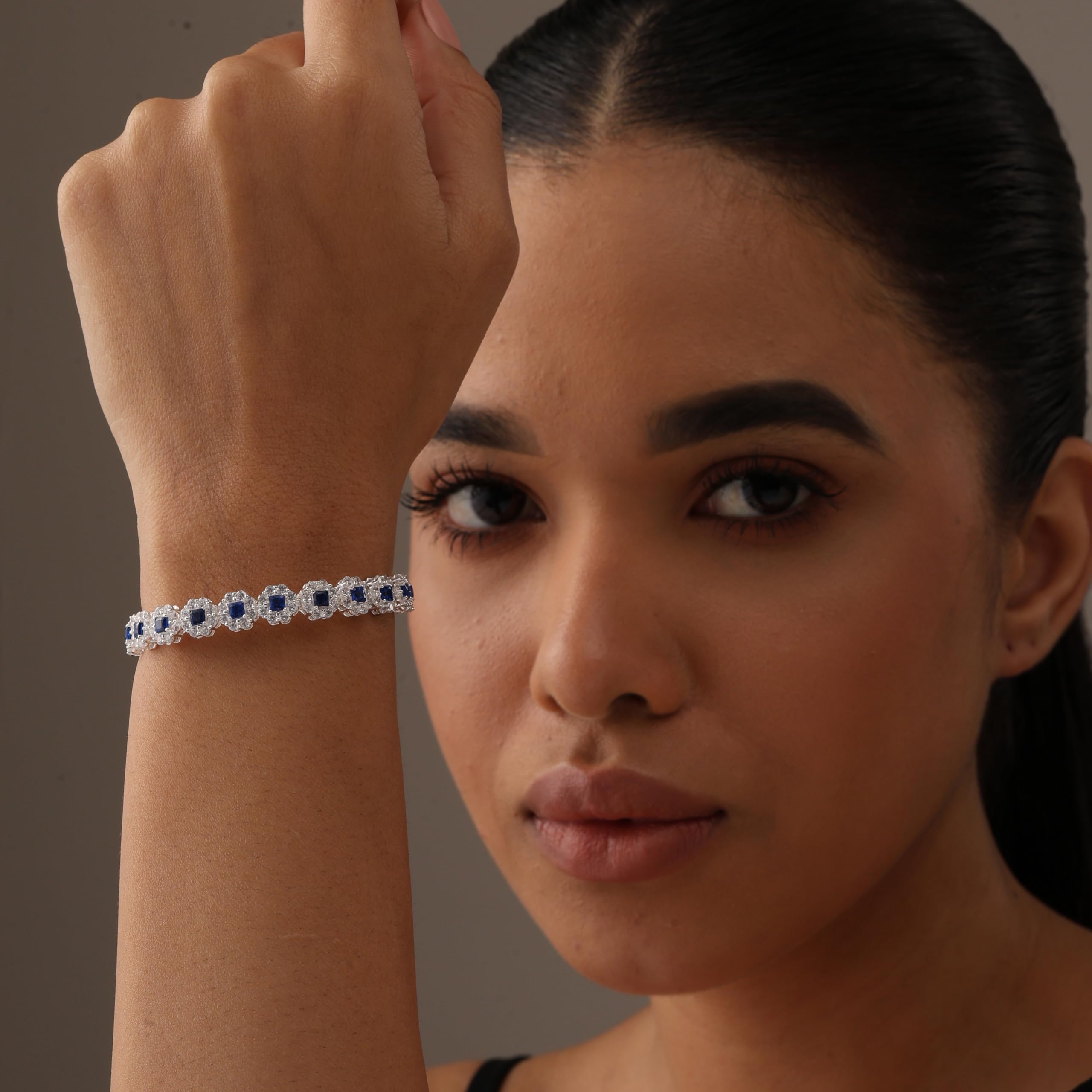 Round Cubic Zirconia & Blue Sapphire Bracelet