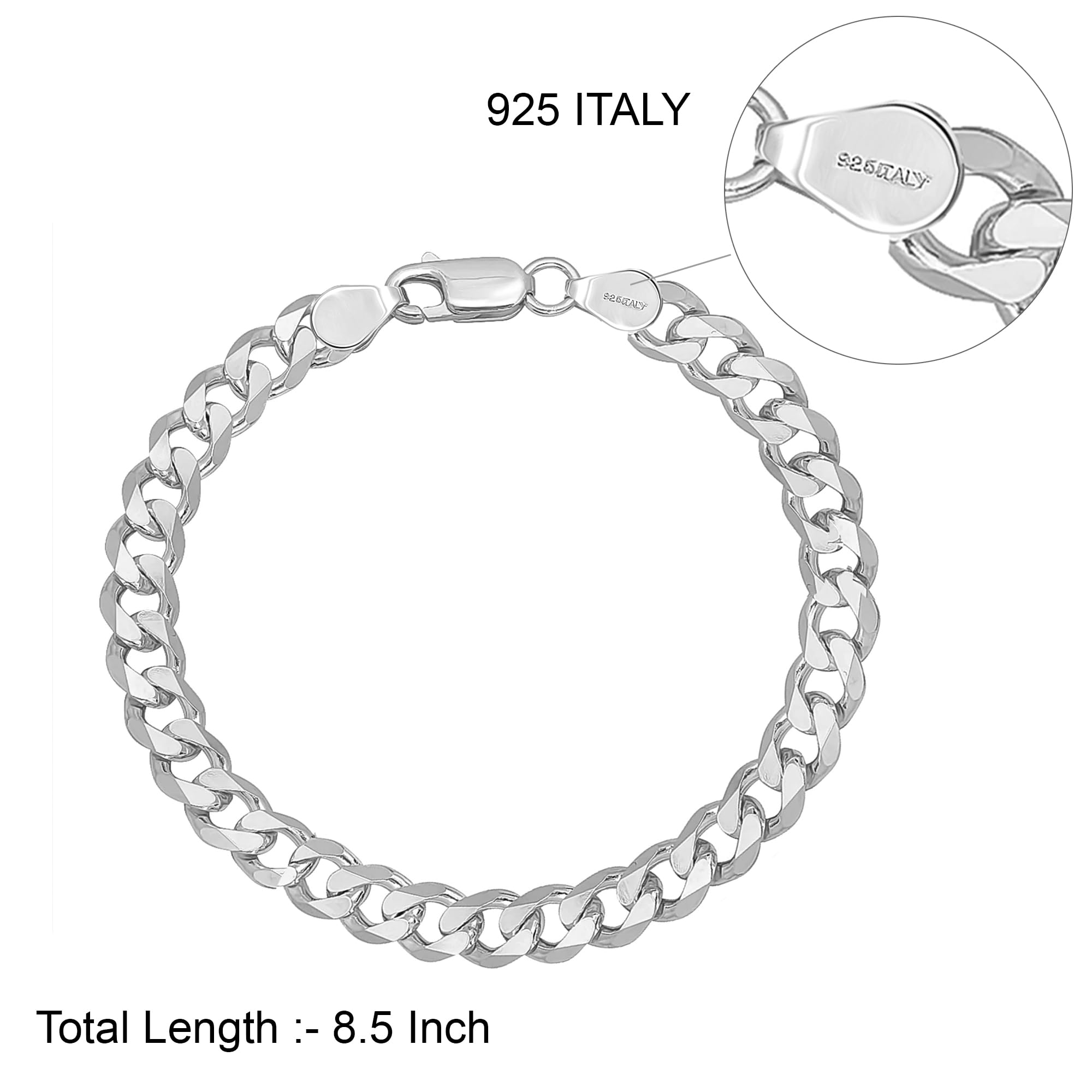 PRODUCT DIMENSIONS : Width (Thickness) – 7 MM || Length – 8.5 Inches || Chain Name – Curb Chain Bracelet || Lock Type – Lobster clasp. PLEASE REFER 2ND IMAGE (BRACELET LENGTH OPTION) FOR DETAILED SIZE.