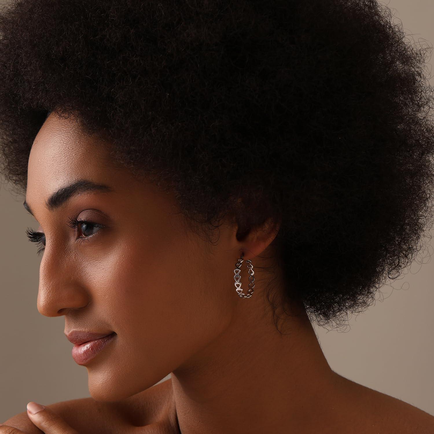 925 Sterling Silver Heart Love Heart Linked Hoop Earring for Women