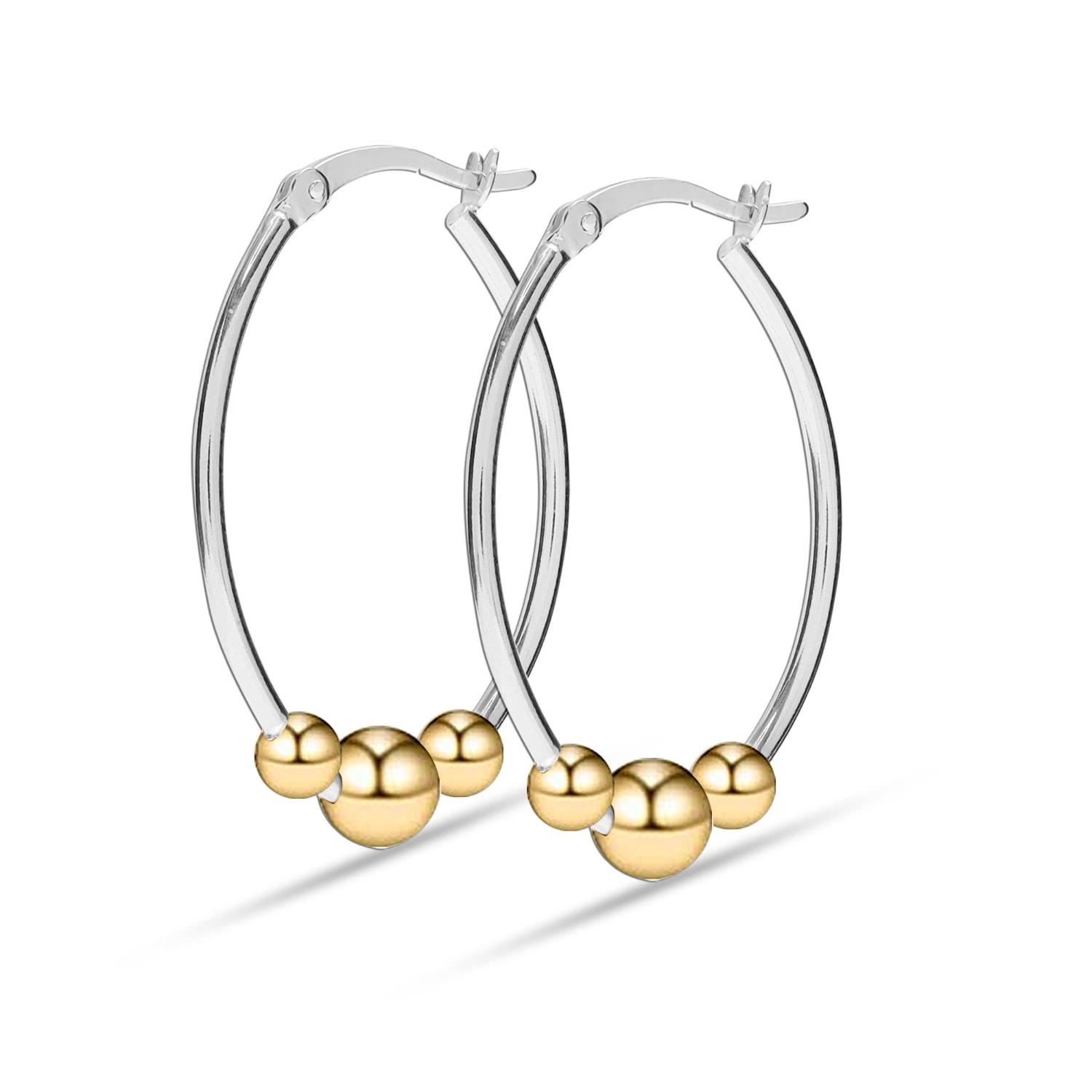 925 Sterling Silver Light-Weight Oval Two-Tone Ball Beaded Hoop Earrings for Women