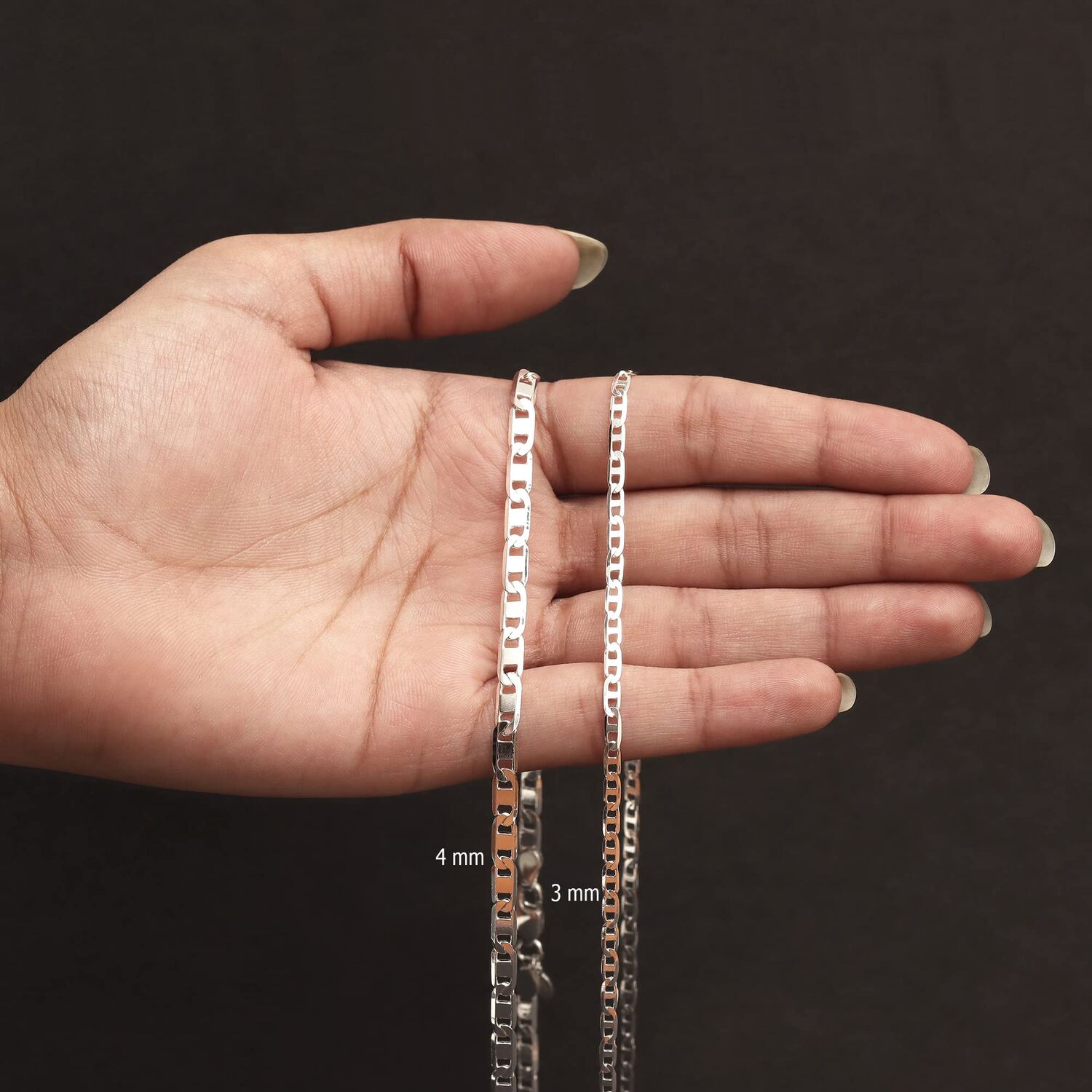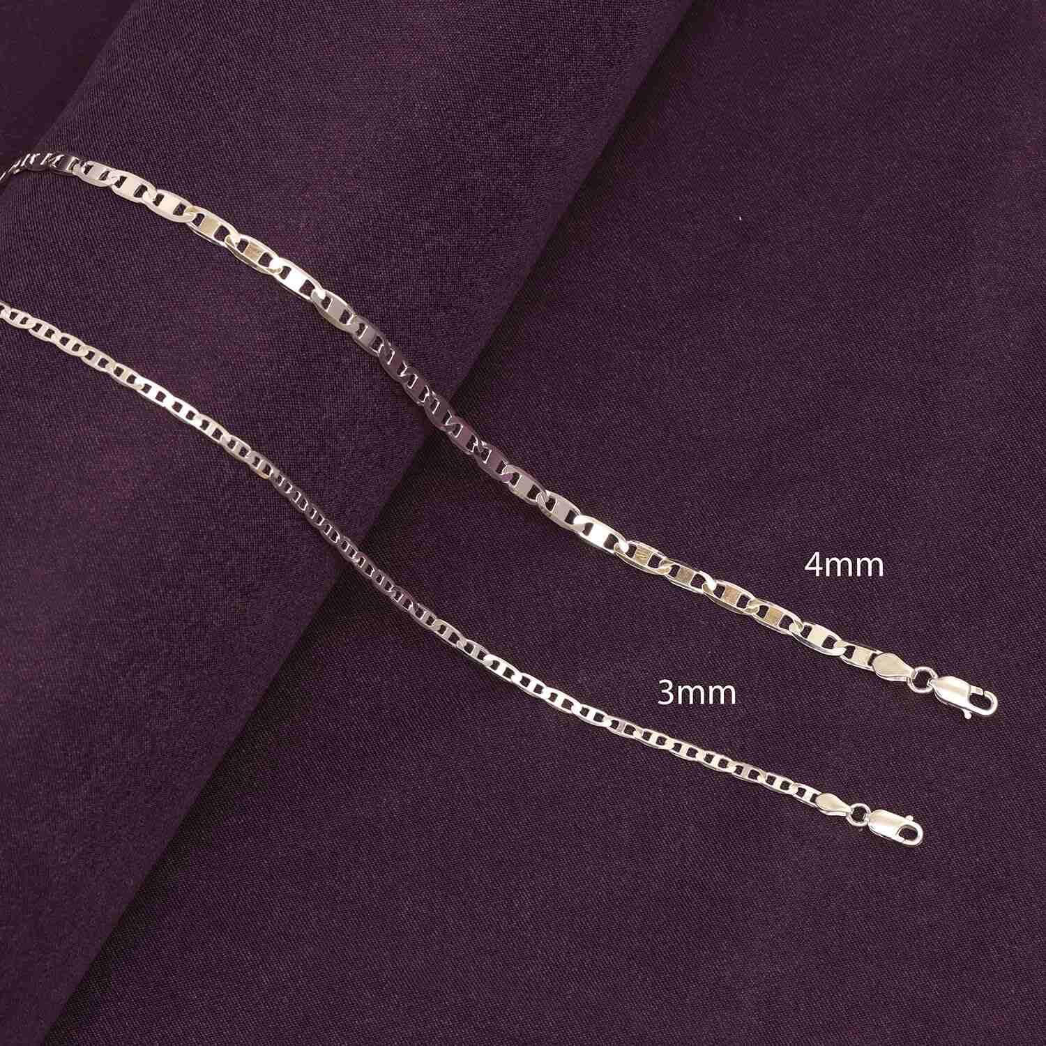 DIMENSIONS : Thin Chain | Width : 3 MM | Length 22 Inches. Strong and Secure Lobster clasp.