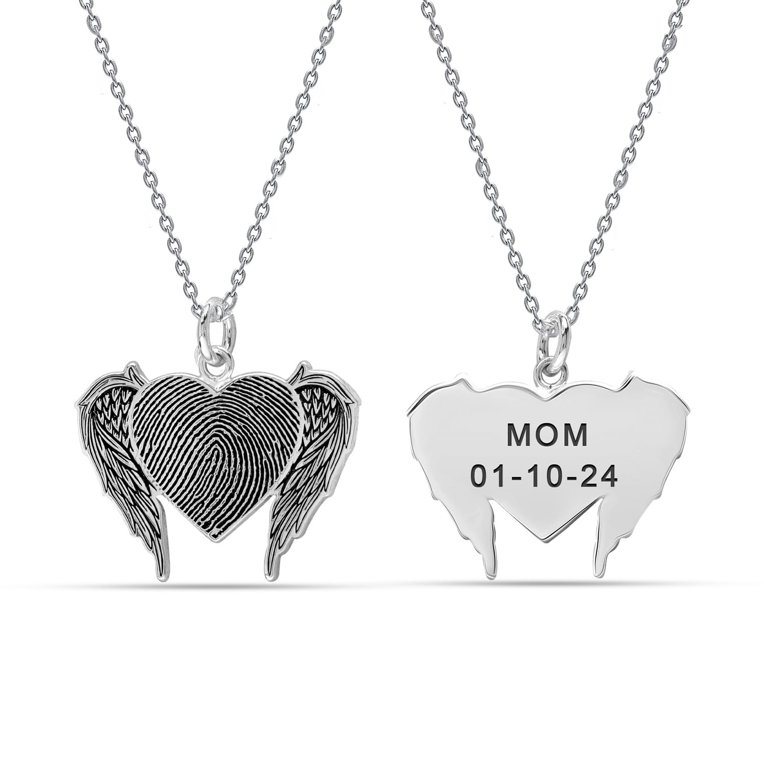 Heart Custom Fingerprint Angel Wing Heart Charm Pendant