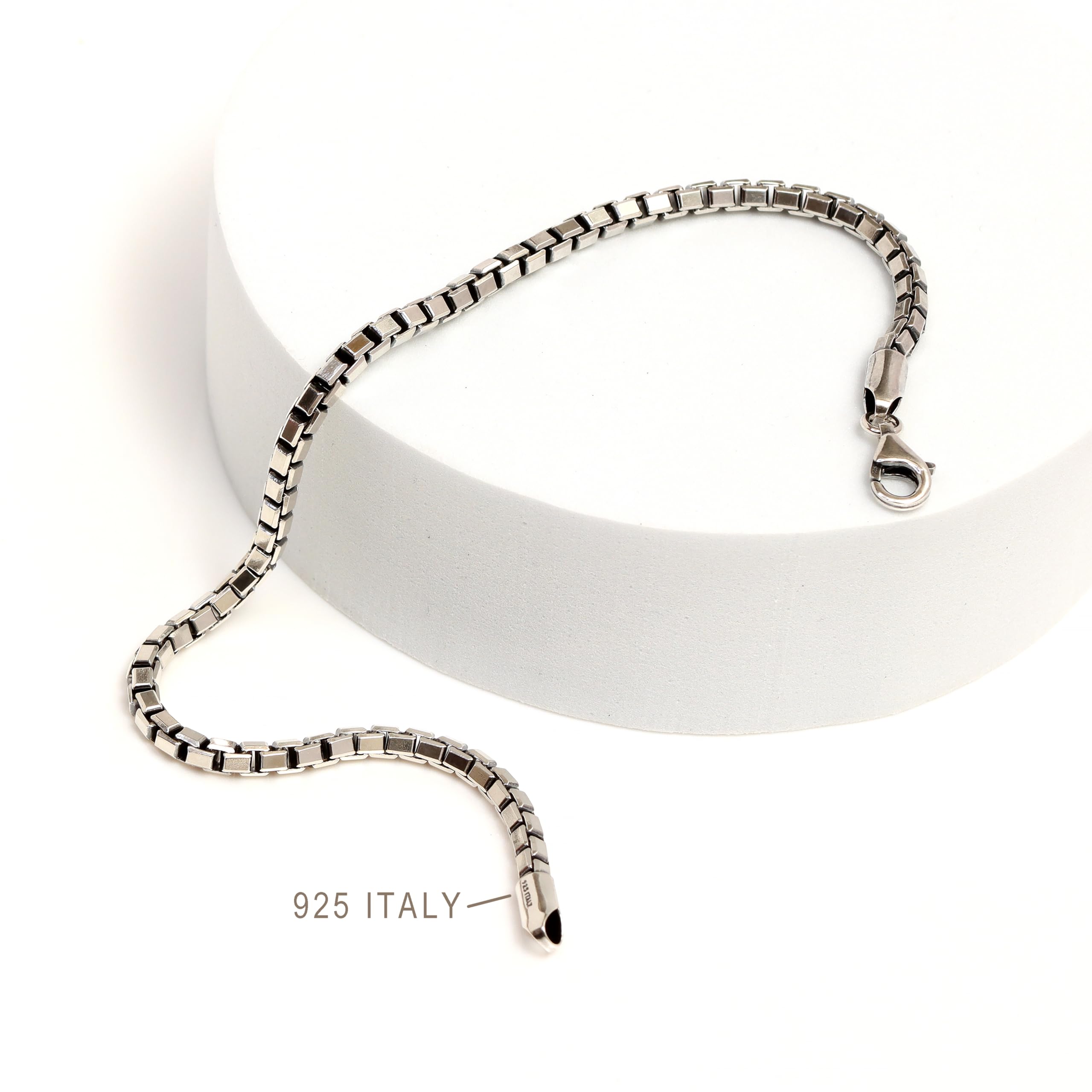DIMENSIONS : Width (Thickness) – 3.5 MM || Length – 9 Inches || Chain Name – Box Chain || Lock Type – Lobster clasp.