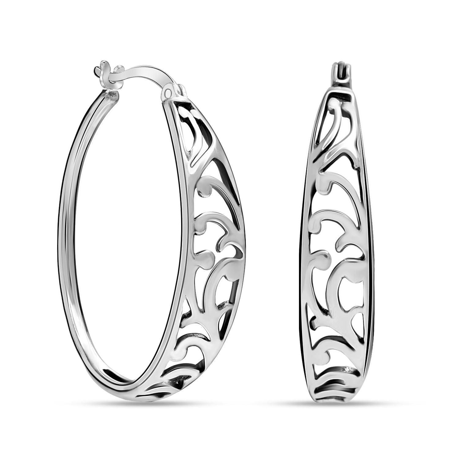 More Product DetailsMADE IN STERLING SILVER: These Hoop Earrings are Made of Real 925 Sterling Silver and come with a ‘925’ sterling silver stamp as a symbol of product quality. All LeCalla Sterling Silver Earrings have perfect shine and finish. Sterling silver is hypoallergenic and nickel-free making this a great choice for those with very sensitive skin.
