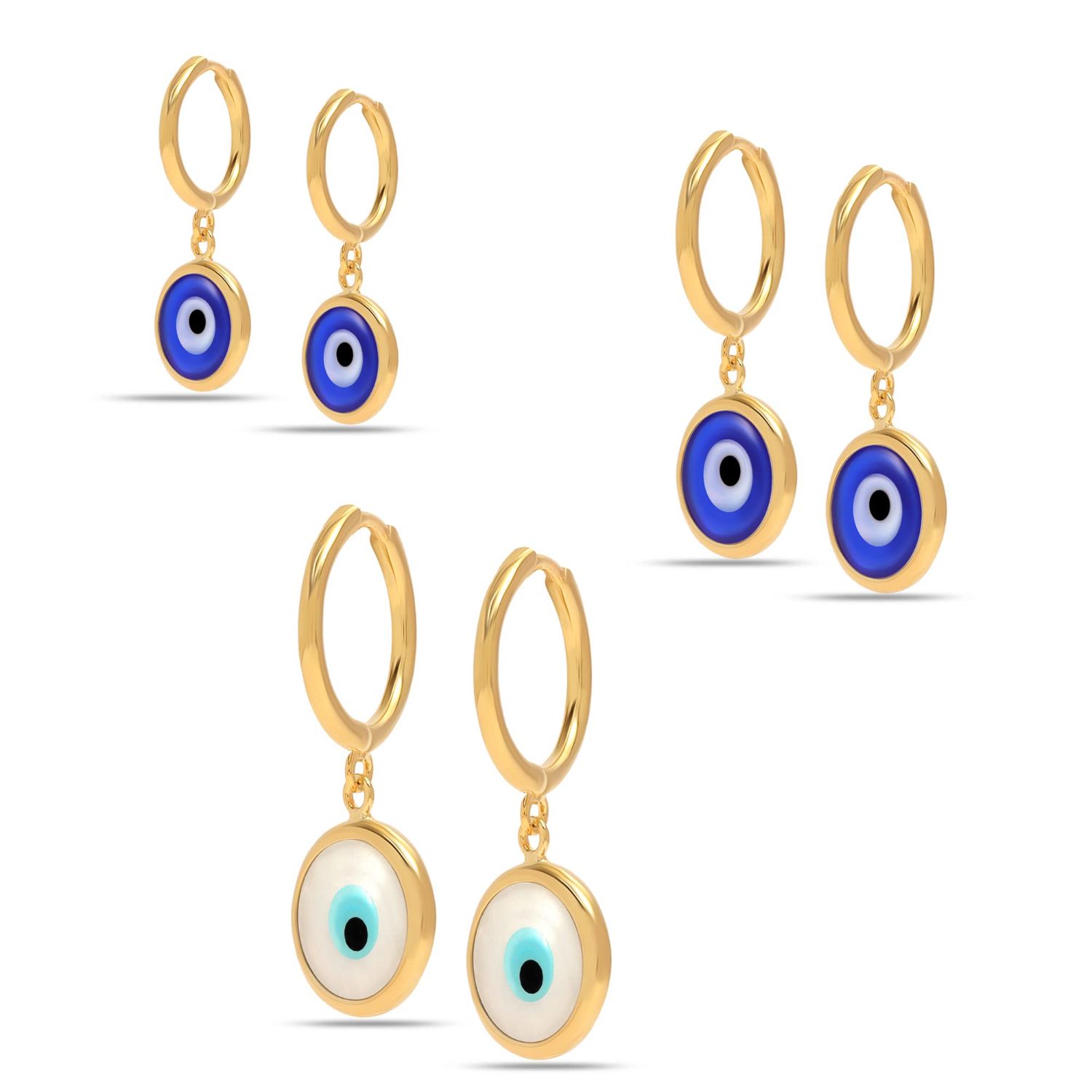 DIMENSIONS : 19 MM / 0.74 Inches, 22 MM / 0.86 Inches, 28 MM / 1.10 Inches, Evil Eye Earrings Set—One order get 3 pairs of earrings