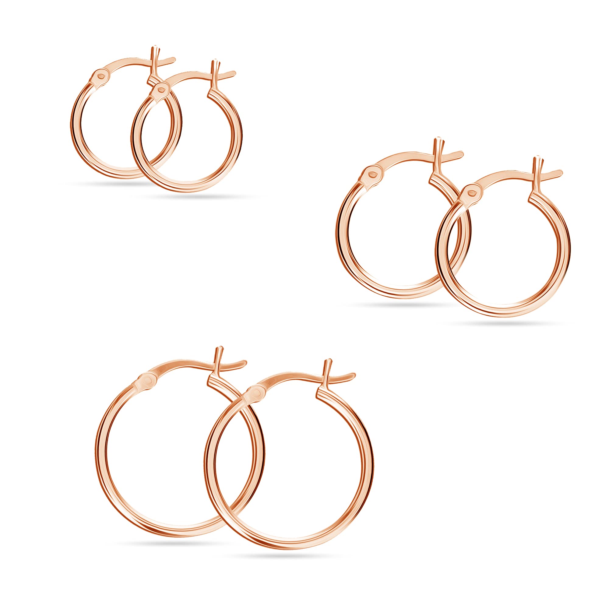 Rose-Gold Plated Click-Top Hoop Earrings (12mm, 15mm, 20mm)