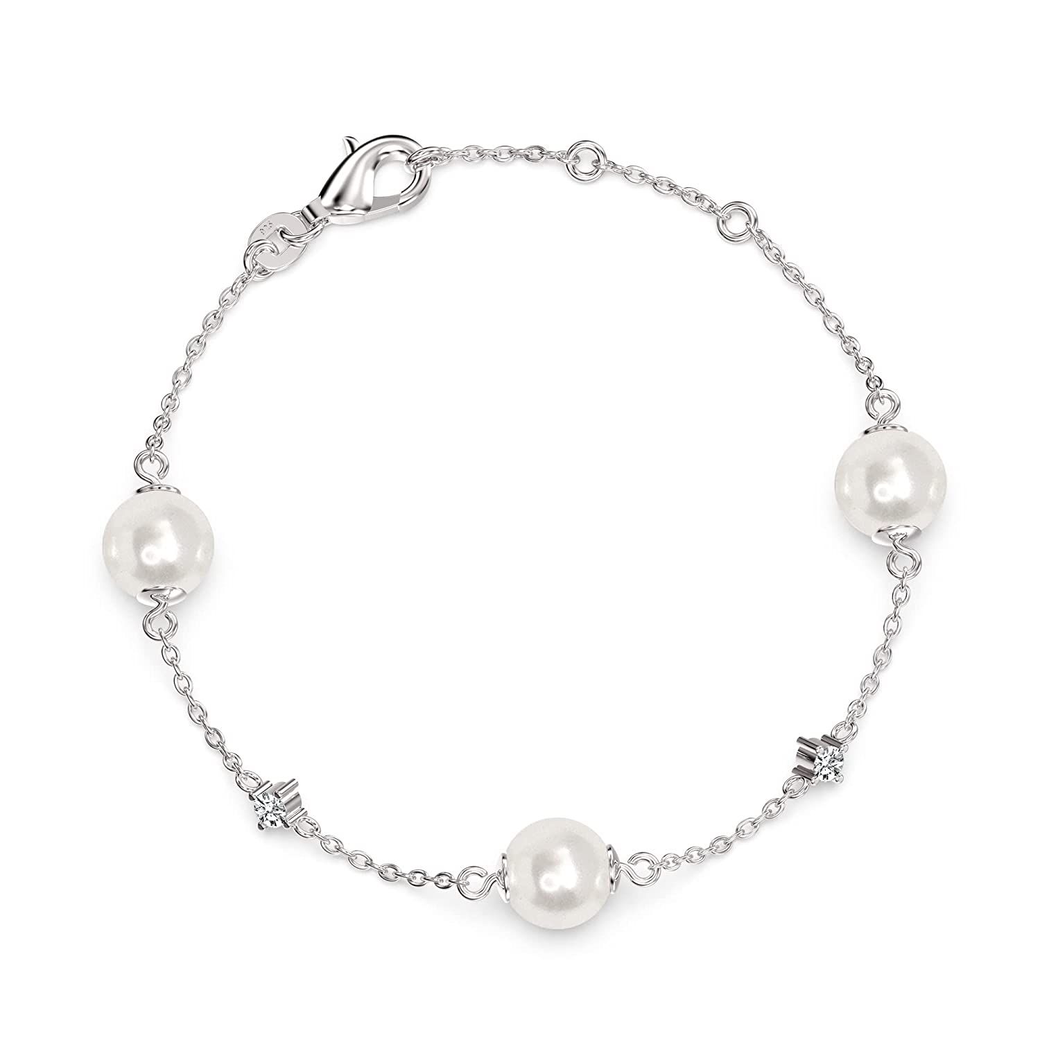 More Product DetailsMADE IN STERLING SILVER: This Silver CZ Pearl Station Bracelet comes with a '925' sterling silver stamp as a symbol of product quality. This Bracelet come with high polish silver finish.