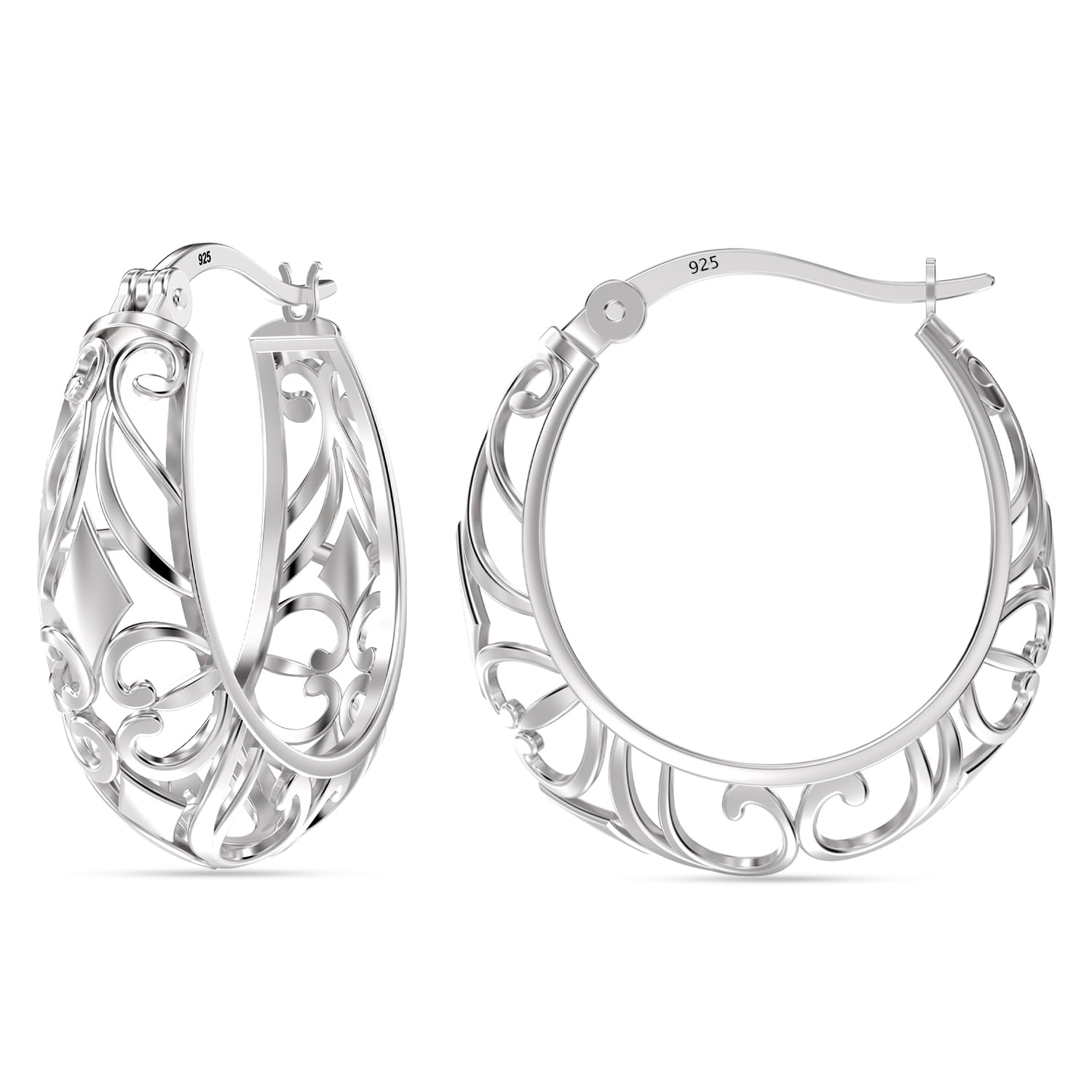 DIMENSIONS : SMALL FILIGREE HOOPS EARRING, DIMENSIONS : 20 MM by 18 MM / 0.78 Inches by 0.70 Inches, with Click-Top Closure.